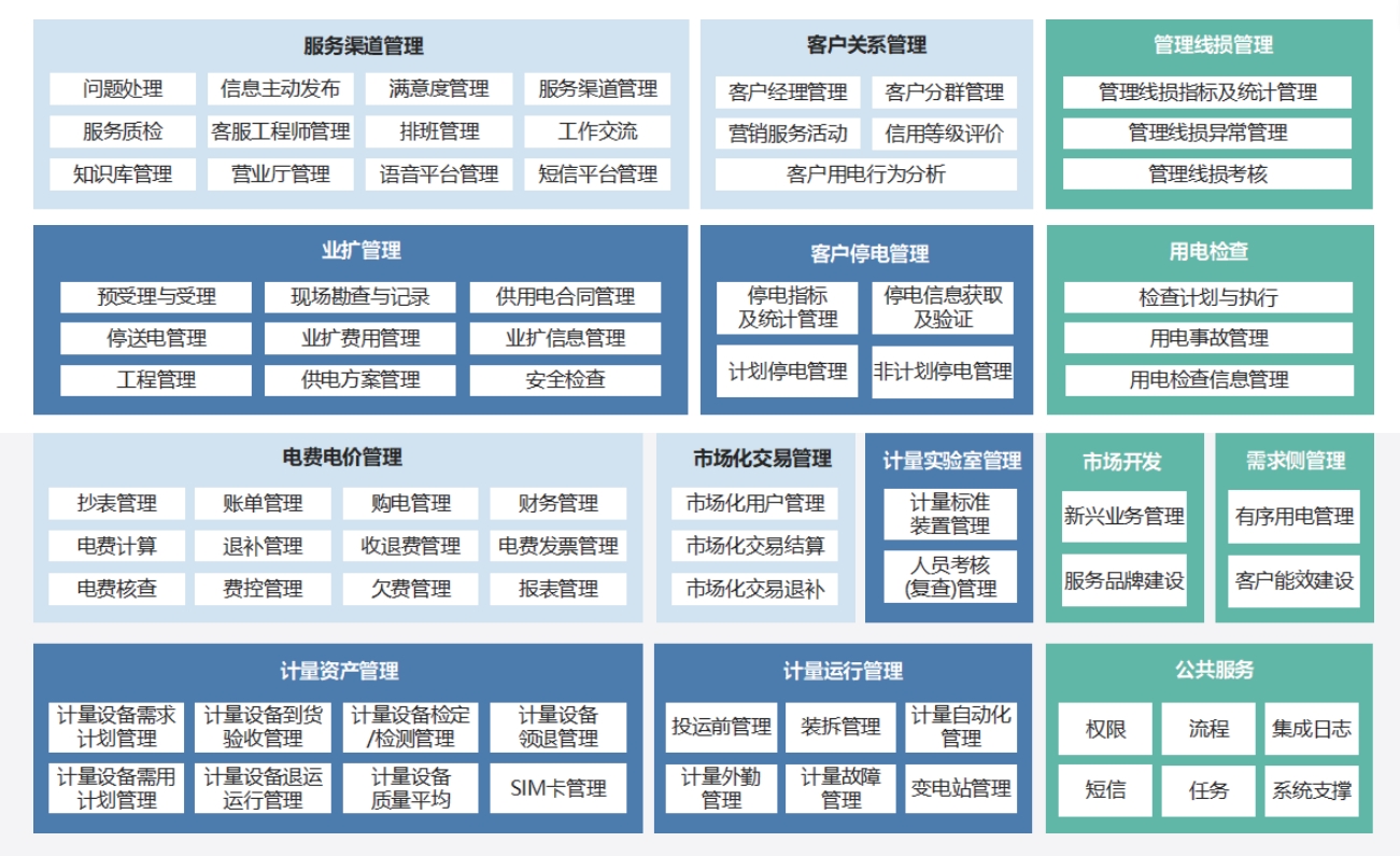 以“市场和客户为中心”的营销全营业治理将CRM理念贯串到营销治理事情中,,,,,,实现所有用电营业全线上办理、全历程管控。。。。。。。