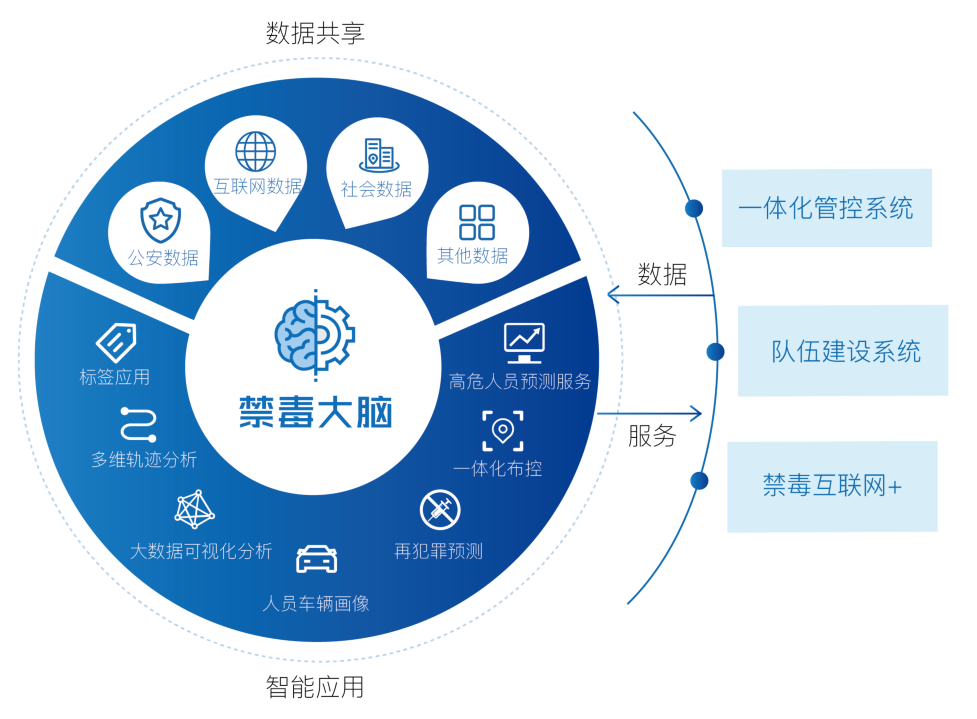 智慧禁毒是以《中华人民共和国禁毒法》、《禁毒条例》等为依据,,,以互联网、移动互联网、区块链、大数据等成熟手艺为辅助,,,以智能效劳为导向,,,贴合我国禁毒现状,,,形成以禁毒大脑为焦点,,,系统支持营业的周全的智能化的禁毒系统。。。。。。。平台提供对吸毒职员全生命周期的闭环式管控。。。。。。。将公安、街道、司法、卫生等部分的禁毒事情纳入信息化治理;;;通过步队建设系统提高禁毒民警步队建设的质量和效率,,,提高步队建设信息化水平,,,重视禁毒民警身体康健;;;禁毒互联网+将禁毒营业融入互联网,,,加大宣传力度,,,打造便民便警效劳;;;建设基于大数据的禁毒大脑,,,实现数据共享和营业协同,,,提供禁毒智能应用;;;移动化办公,,,节约人力本钱。。。。。。。