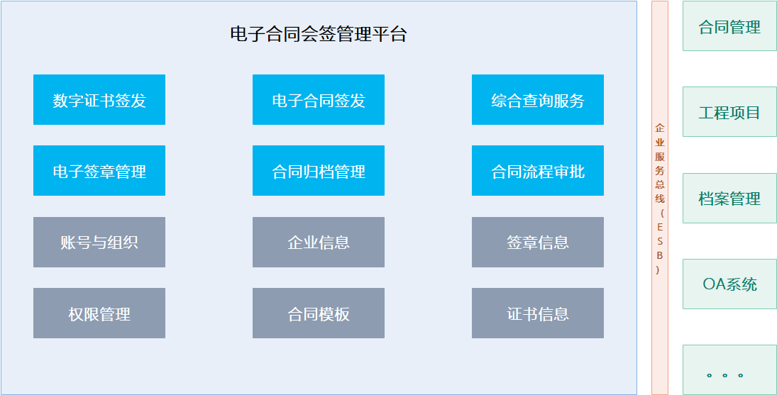 平台以PKI公共密钥系统为手艺基础的信息清静应用支持平台,,,,,,主要系统提供周全的集成的电子署名/电子签章等清静效劳。。。。条约签署作业时可直接选择在电子电子签盖电子署名、电子签章,,,,,,将会极大的提高企业办公效率。。。。